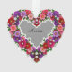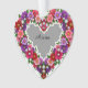 Vibrant, decorative heart featuring pink flowers, green leaves, pearls and blue gems around a stylized gray heart. Perfect for romance, Valentine themes, jewelry, weddings, crafts, and decorative art.