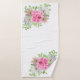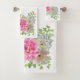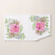 Un élégant ensemble de serviettes de bain à fleurs roses.