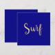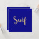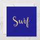 Ce design côtier présente un grand « Surf » centré écrit en texte festif et élégant sur un fond bleu royal.