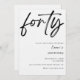 Celebrate turning forty in style with this elegant and modern 40th birthday invitation card. Featuring clean typography, a handwritten “forty” script, and customizable details, this invite adds a classy touch to any milestone celebration. Perfect for women or men, this minimalist birthday invitation is ideal for dinner parties, cocktail nights, or formal gatherings. Easily personalize the name, date, time, and location to create the perfect invitation for your special day. Designed for premium printing and high engagement on Zazzle.