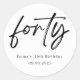 Add a stylish touch to any 40th birthday celebration with these elegant “forty” round party stickers. Featuring modern handwritten lettering and a minimalist heart design, they’re perfect for sealing envelopes, decorating party favors, gift bags, or event stationery. Personalize with the name and date to create unforgettable, coordinated birthday décor. A chic and timeless choice for milestone celebrations.