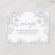 élégant floral français, carte rsvp de mariage, fleurs bleu toile, vaisselle mariage de luxe, crête de fleur de toile, doux beau simple, classique élégant vintage, poussiéreux bleu toile de jouy, cadre de luxe français, script de calligraphie cursive