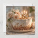 Cette belle et élégante image présente un gâteau de célébration blanc et gelé sur une assiette dorée, orné d'un grand bouquet délicat de fleurs blanches et de couleur pêche. Le gâteau est un élément central d'une célébration d'étape, avec une garniture de gâteau dorée "50" et trois bougies éclairées. Le cadre est chaleureux et accueillant, avec une lumière douce et naturelle et une douce circulation de miettes, créant une atmosphère intime et joyeuse. Cette image est parfaite pour tous ceux qui cherchent à transmettre un sentiment de luxe, d'élégance, et une occasion spéciale et mémorable.