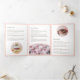 Un élégant gâteau à carreaux rose pastel décoré de fleurs blanches surplombe un faux stand de gâteau doré pour une belle esthétique sur cette boulangerie ou sur la brochure triplée du décorateur de gâteaux. Mettez à jour le texte calligraphique avec votre nom ou nom d'entreprise pour un logo instantané. Créé pour les boulangeries, les décorateurs de gâteaux, les traiteurs, les cupcakes, les pâtisseries maison ou toute entreprise à la recherche d'un motif élégant. Remplacez le texte personnalisable pour s'adapter à votre marque et personnalisez les détails et les photos dans la brochure pour votre propre usage. Ces brochures 5x7 sont parfaites pour afficher vos listes de prix et le menu de services, ou pour décrire votre gamme de produits. Ajoutez des photos supplémentaires pour encore plus de personnalisation. Un excellent outil de marketing à distribuer aux clients ou à présenter rapidement votre entreprise. Veuillez contacter le concepteur pour obtenir de l'aide sur les modifications de composition ou de disposition spéciales. Art et design © 1201AM Design Studio | www.1201am.com