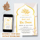 Celebrate the blessings of Ramadan with this elegant Iftar invitation. Featuring a sophisticated gold foil-style Islamic arch, subtle geometric patterns, and modern botanical accents on a soft cream background. This versatile template is perfect for Iftar gatherings, Eid celebrations, or any Islamic dinner event. Fully customizable to include your own event details.