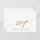 Cette élégante carte RSVP de choix de calligraphie or est parfaite pour un mariage simple. Le design neutre présente une carte minimaliste décorée avec une typographie romantique et fantaisiste de feuille d'or. Cette carte de réponse mariage demande aux clients quel repas ils souhaitent à la réception. Remarque : Ce design ne comporte pas de véritable feuille d'or. C'est un graphisme de haute qualité fait pour ressembler à du papier doré.