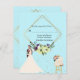 A chic and modern RSVP card featuring elegant gold foil, a geometric frame, and botanical details on a dusty blue background. Perfect for coordinating with your wedding invitation.