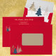 Envoyez vos souhaits de vacances en style avec cette carte de Noël personnalisée et l'enveloppe correspondante. Doté d'un design graphique moderne de sapin de Noël en or brillant contre un arrière - plan rouge de Noël. Le message Joyeuses Fêtes et l'année peuvent être customisés avec votre salutation de vacances préférée. Les couleurs et le design sont à la fois classiques et contemporains, A l'intérieur, vous pouvez facilement ajouter votre propre photo de famille, les noms et l'accueil personnalisé pour un gardien vraiment unique. Une enveloppe assortie à votre adresse de retour complète le look avec la coordination des arbres de vacances, ce qui fait que votre carte se démarque au moment où elle est reçue. Parfait pour les familles, les couples et une gamme de fêtes de fin d'année, ce design de cartes de luxe ajoute sophistication et chaleur à votre période de Noël.