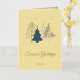 Envoyez vos souhaits de vacances en style avec cette carte de Noël personnalisée et l'enveloppe correspondante. Doté d'un design graphique moderne de sapin de Noël en or chatoyant contre un arrière - plan jaune beurre mou. Le message Joyeuses Fêtes et l'année peuvent être customisés avec votre salutation de vacances préférée. Les couleurs et le design sont à la fois classiques et contemporains, A l'intérieur, vous pouvez facilement ajouter votre propre photo de famille, les noms et l'accueil personnalisé pour un gardien vraiment unique. Une enveloppe assortie à votre adresse de retour complète le look avec la coordination des arbres de vacances, ce qui fait que votre carte se démarque au moment où elle est reçue. Parfait pour les familles, les couples et une gamme de fêtes de fin d'année, ce design de cartes de luxe ajoute sophistication et chaleur à votre période de Noël.