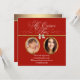 Belle photo bébé et actuelle photo rouge et or Quinceanera invitation. Cette invitation à la photo rouge sucrée Quinceanera présente un élégant ruban d'or et un arc avec des cadres ovales d'or pour deux images de votre belle fille - l'une comme un bébé et l'autre comme elle est maintenant. Customisez cette élégante photo rouge et or Quinceanera invitation en choisissant simplement le bouton orange "Customisez-le !" pour commencer à ajouter vos photos, détails de l'événement, style de police, taille et couleur de police, et libellé. Veuillez noter que tous les modèles de cartes et d'invitations que vous trouverez sur Zazzle sont des graphiques imprimés sans bijoux, arcs, surélevés, gaufrés, ou des pièces ou pièces ajoutées.