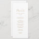 Cette élégante carte de dîner mariage en or est parfaite pour un mariage simple. Le design minimaliste or et blanc présente une typographie romantique avec style glamour moderne. Personnalisable dans n'importe quelle couleur. Gardez le design minimal et élégant, tel quel, ou personnalisez-le en ajoutant vos propres graphiques et artwork. Ce menu peut être utilisé pour une réception de mariage, un dîner de répétition ou tout événement.