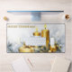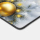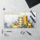 A stylish Christmas scene featuring golden candles, shiny ornaments, and a beautifully wrapped gift. The elegant combination of white and gold creates a luxurious and festive atmosphere full of warmth and holiday spirit.