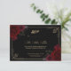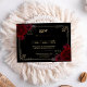 Invite guests to respond in style with this elegant gothic romance wedding RSVP card, designed with deep black tones, elegant fonts, gold elegant borders and dark red roses . This reply card pairs perfectly with dark romantic, gothic, and moody wedding themes.