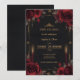 Announce your Gothic fairytale wedding in style with this Gothic romance save the date card. Featuring a deep black background, red roses, candles and ornate gold Victorian borders and elements, this design is perfect for couples planning a moody, romantic Gothic-inspired wedding.