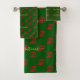 Élégante serviette de bain verte et sainte de Noël à utiliser pendant la saison festive, avec motif rouge et les mots MERRY CHRISTMAS en écriture d'or typographie. Le texte est PERSONNALISABLE pour que vous puissiez créer votre propre texte, par exemple, ajouter votre nom. Vous pouvez modifier la couleur de l'arrière - plan en cliquant sur le bouton Modifier cette conception et en choisissant dans le modèle de couleurs.
