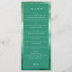 This elegant wedding menu features a sophisticated design with a deep green background and crisp white text, creating a refined and inviting atmosphere. The layout is clean and organized, with sections for starters, salad, main course, and dessert, each highlighted in bold serif fonts that enhance readability and formality. A touch of elegance is added by the cursive script at the top, while the overall style remains straightforward and functional, perfect for an upscale dining experience. Ideal for weddings or formal events, this menu combines classic aesthetics with modern simplicity to impress your guests.
