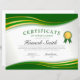 Elégant Green & Gold Wave Professional Certificate Award Flyer avec médaille Green & Gold.