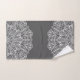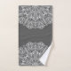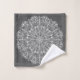 Un élégant mandala floral blanc surplombe un arrière - plan gris moyen.