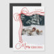 An elegant and minimal family photo Christmas card featuring a whimsical hand-drawn red and white bow and script font. This modern magnetic holiday card in simple yet festive color palette is perfect for sharing warm season’s greetings, Merry Christmas wishes, and custom holiday messages with friends and family in style.