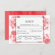 Ce design présente d'élégantes fleurs d'hibiscus tropicaux rouges. Le texte noir classieux contraste avec l'illustration de l'aquarelle florale rouge. La bordure noire de ligne fine entourant le libellé crée un style sophistiqué, tendance et chic. La configuration simple de la typographie lui donne un style distinct. Idéal pour un mariage tropical de plage de destination. Elégant mariage RSVP design de carte d'acceptation avec des éléments modernes. Des invitations de mariage et d'autres articles de papeterie sont également disponibles.