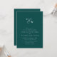Avec une élégante esperluette unissant deux initiales, ce design simple est le faire-part de mariage parfait pour un événement classique. L'arrière - plan turquoise riche en profondeur le rend tendance et sophistiqué et parfait pour un mariage d'automne ou d'hiver, mais la couleur peut être ajustée en cliquant sur "customiser plus loin".