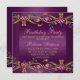 Cette Elégante Invitation d'Anniversaire personnalisable présente des fleurs dorées et roses sur un arrière - plan violet. Customisez-le en ajoutant vos détails dans la couleur et la police de votre choix !