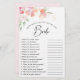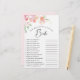 "Connaissez-vous bien la mariée" feuille de douche nuptiale avec un bouquet d'aquarelle rose et corail floral aux accents or et "Mariée" dans un script élégant. Personnalisez les questions et ajoutez le nom et la date de douche de la future mariée au dos.