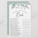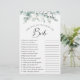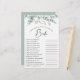 Elégante douche nuptiale "comment bien connaissez-vous la mariée" feuille de jeu avec sauge vert eucalyptus vert aquarelles et "Mariée" dans un script élégant. Personnalisez les questions sur la future mariée et ajoutez son nom et sa date de douche au dos.