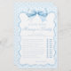 Classique sophistiqué "Devinez qui ? Jeu "Maman ou Papa" conçu pour une douche bébé garçon, orné d'un charmant arc bleu pastel, cadre ruban, et un motif à pois de polka fantaisiste dans l'arrière - plan. Engagez vos invités avec ce jeu délicieux, parfait pour ajouter du plaisir et de l'excitation à votre célébration tout en créant des souvenirs chéris.