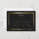 Carte de réponse RSVP Black & Metallic Gold Wedding. Options Pour Le Dîner.