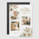 Elégant et unique 3 photos de vacances design floral avec des bouquets d'angle de poinsettia blanche style aquarelle, saint et pin avec éclat d'or. Inclut un accueil Joyeux Noël coulant dans un script décoratif et un champ de texte modifiable.
