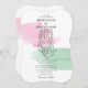 Cette conception présente une élégante silhouette noire illustrant une fleur de protéa royale. Les traits de brosse rose et vert donnent vie à l'illustration florale noire et blanche. Les touches de couleur rose et verte créent des tons floraux qui complètent le design. Le design est centré entre la typographie sophistiquée. Conception élégante d'invitation de mariage avec des éléments modernes. Des articles de papeterie mariage correspondants et d'autres formats d'invitation de mariage sont également disponibles.