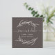Élégante couronne de feuille de laurier dans le beige tendre, calligraphie de script, typographie classique et votre photo préférée sur le côté arrière surplombant le marron poussiéreux.