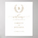 Élégante Affiche de bienvenue Mariage de monographie de couronne Laurel. Affiche de bienvenue Mariage de couronne d'or. Vintage Feuille couronne Mariage crête de couronne