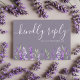 Carte RSVP simple et élégante, avec des aquarelles originales de notre studio. Des éléments de lavande et de verdure intemporels ont été créés avec votre journée spéciale à l'esprit. Facile à customiser avec vos informations uniques.