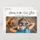 Envoyez les voeux du Nouvel An à votre famille et à vos amis avec ce design moderne comprenant un script de vacances blanc et une belle photo.