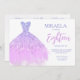 The captivating lilac glitter gown design make this invitation exude elegance and charm.