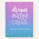 Une belle parties scintillant en faux violet et bleu personnalisées 8,5 x 11 sketchbook. Les mots "DREAM IMAGINE CREATE" dans une police dessinée à la main personnalisée avec votre nom ci-dessous. Customisez le carnet d'esquisses avec le nom de votre choix pour que quelqu'un se sente spécial. Fait un cadeau amusant pour les anniversaires ou pour Noël. Vient dans une variété de couleurs. Conçu pour vous par Blackberry Boulevard.