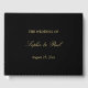 Elégant Livre d'hôtes Mariage noir doré, s'il vous plaît personnaliser le texte sur la colonne vertébrale et sur le devant selon les besoins, en utilisant le modèle de personnalisation en ligne avant de commander. L'avant et la colonne vertébrale du livre d'or présentent un texte élégant dans une teinte dorée de beige (faux or / or look).