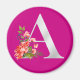 Élégant Magenta Metallic Un Aimant Monogramme Flor