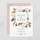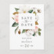 Cette élégante carte postale magnolia blanche à l'exception de la date d'annonce est parfaite pour un mariage moderne et classe. La décoration florale douce est composée de pivoines roses vertes et aquarelles, de magnifiques fleurs de magnolia blanches et de coton avec de l'or et des feuilles verts dans un agencement luxueux.