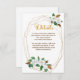 Utilisez cette fiche détaillée pour insérer dans le faire-part de mariage des informations telles que les directions vers le lieu de mariage ou des informations sur le bloc de chambre de l'hôtel qui a été réservé ou d'autres informations importantes. Vous pouvez même inclure un code QR qui se connecte à votre site Web mariage et qui contient des informations encore plus détaillées. Il est dans le même élégant thème magnolia avec le fil d'or géométrique et magnolias blanc qui est dans notre suite de faire-part de mariage.