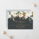 Ces élégantes cartes de faire-part en velours noir magnolia ont un beau design moderne et élégant. Le design floral moody est composé de pivoines roses d'aquarelle, de magnifiques fleurs de magnolia blanches et de coton avec de l'or et des feuilles verts dans un agencement luxueux sur un arrière - plan sombre. Personnalisez la carte avec les détails de votre mariage, et utilisez la section modèle au verso pour obtenir des informations de réception, pour annoncer un changement d'adresse, ou pour tout autre détail que vous souhaitez partager.