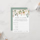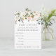 Faites votre baby shower amusant et interactif avec ces adorables cartes de jeu pour devinettes pour bébés! Doté d'une charmante bordure en haut de magnolias blancs, de fleurs roses rousses, de fleurs de coton et de feuilles verdoyants, ce design est parfait pour célébrer une petite fille. Les clients peuvent se joindre à l'excitation en devinant la date de naissance, l'heure de naissance, le poids et la longueur du bébé, faisant de ce jeu un ajout délicieux à votre baby shower sur le thème du printemps. L'élégant design floral ajoute une touche de sophistication à votre décor événementiel. Commandez dès aujourd'hui ces cartes de jeu personnalisées pour créer des souvenirs inoubliables avec vos proches !