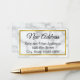Ce faux changement d'adresse en marbre blanc peut être personnalisé avec le texte souhaité. En haut, il y a un élégant script noir (montré : Nouvelle adresse). Ensuite, il y a trois lignes de texte noir pour votre nom et adresse. La bordure en or n'est pas faite de papier peint.