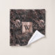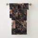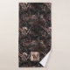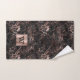 Un design élégant avec une image arrière - plan de marbre noir avec des veines d'or rose. Personnalisez-le avec votre initiale monogramme en police serif de style ancien noir sur un carré rose à double bordure en or faux brossé métallique.