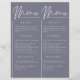 Présentant notre carte de menu personnalisable à double style, conçu pour vous de couper au milieu en créant deux menus distincts, ce qui en fait une solution économique pour un mariage sur un budget. REMARQUE : le menu n'est pas pré-coupé. Cette carte magnifiquement conçue présente un look propre et sophistiqué avec un délicat motif de fleur d'aquarelle sur le dos avec un simple monogramme. Pour plus de détails sur le menu de votre journée spéciale, vous pouvez utiliser trois différents titels et envoyer un texte sous. Idéal pour un buffet ou une restauration. L'illustration florale botanique délicate de l'aquarelle en gris sombre et violet poussiéreux lui donne un design romantique moderne. La fleur peut être facilement effacée si vous désirez un design encore plus simple. Cliquez sur l'outil de conception ouverte pour effectuer des modifications personnalisées.