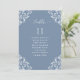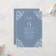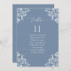 Cartes de Mariage bleu Dusty : Utilisez ces listes de tables vintages et classiques pour votre carte de sièges à votre mariage ou à votre événement. Ce design comprend le mot "Table" dans une calligraphie élégante avec un design orné de coins vintages pour un look luxueux. Il est mis en bleu poussiéreux / bleu gris / ardoise bleu, mais vous pouvez changer la couleur à tout ce que vous voulez! Cliquez simplement sur "customiser plus" et cliquez sur l'élément pour changer la couleur.