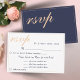 Carte RSVP élégante personnalisable avec un choix de menu pour un mariage. Il est parfait pour un mariage moderne et élégant. Le texte est dans un script moderne et dans une couleur pêche. L'arrière - plan est de couleur bleu nuit. Cette carte de réponse mariage demande à vos invités quel repas ils souhaitent à votre réception et le nombre de menus. Vous pouvez modifier les informations sur la carte pour qu'elles correspondent à vos besoins. Cette carte RSVP correspond à tous les articles de la collection Mariage bleu rose de minuit jaune, que vous pouvez trouver sous cette carte.