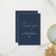 Cette élégante carte de remerciements de mariage bleu marine est la meilleure façon de témoigner de votre reconnaissance à vos invités. Doté d'un arrière - plan marin profond avec une calligraphie moderne et une typographie minimaliste, il crée un design intemporel et chaleureux. Idéal pour les couples à la recherche d'une suite de papeterie mariage sophistiquée et moderne, cette carte s'associe magnifiquement avec les invitations assorties, les cartes RSVP et les insertions de détails. Une façon simple mais élégante d'express gratitude et compléter votre ensemble de papeterie mariage.